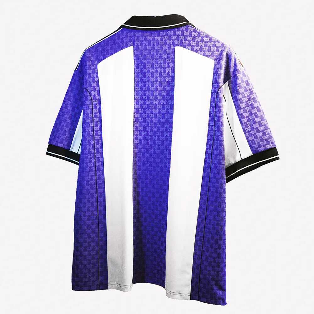 Crafted in our signature purple-and-white custom jacquard, the 2025 edition features a subtle all-over Nemesis pattern. Angular shoulder straps cut a sharp, pro-ready silhouette, while the ultra-soft poly/spandex blend keeps you cool, comfortable, and flexible under pressure. Up front, silicone-rubber crest and text offer a premium, crack-free finish, and a stitched badge of authenticity at the hem confirms you’re wearing the real deal.